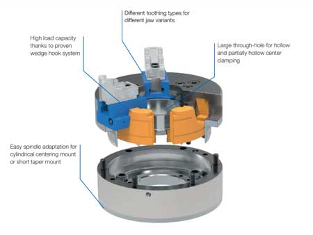 氣缸內置于卡盤,安裝簡便,適用于各種車床